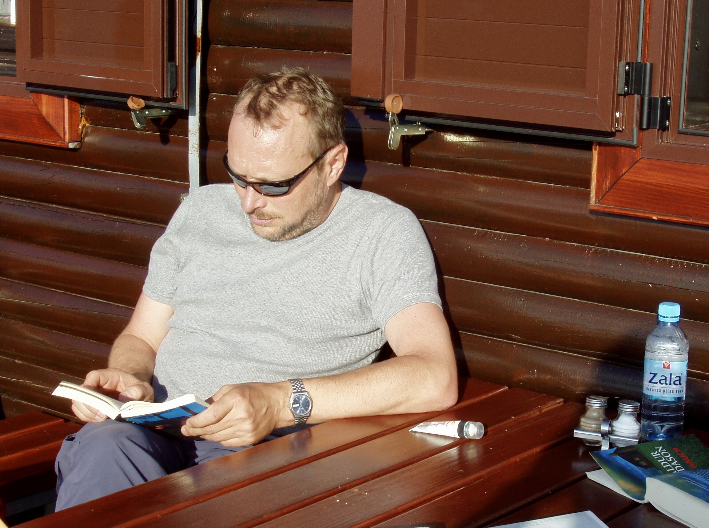 Hier noch zwei Erinnerungsfotos aus dem Jahr 2005 (vor der Hütte und auf dem Gipfel):