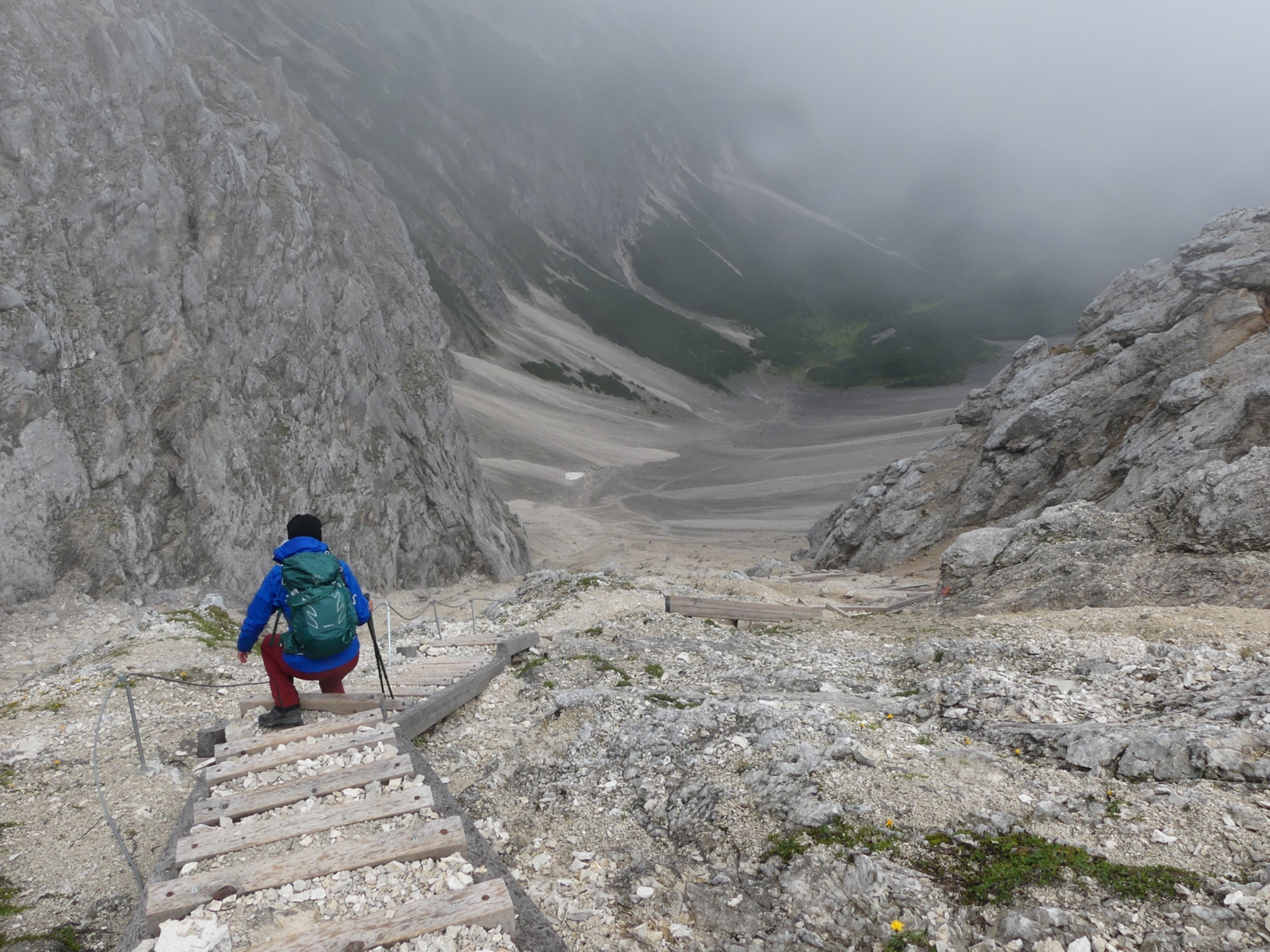 Die Strassen waren am Morgen noch nass, aber als wir das Hotel verliessen, blendeten uns die ersten Sonnenstrahlen. Nachdem wir mit der ersten Bahn zur Seegrube (dorthin waren wir ja vor zwei Tagen bereits aufgestiegen) hochgefahren waren, legten wir ohne Kafi direkt los. Ein Mix aus Sonne, Nebel, leichtem Regen und kaltem Wind begleitete uns den ganzen Tag. Wieder einmal haben wir erlebt, wie in den Bergen innerhalb von Minuten das Wetter umschlagen kann: Gerade hatten wir noch ohne Jacken eine Pause gemacht, als uns eine eiskalte Nebel-und Regenfront traf und wir blitzartig Regenjacke, Kappe und Handschuhe anziehen mussten.
