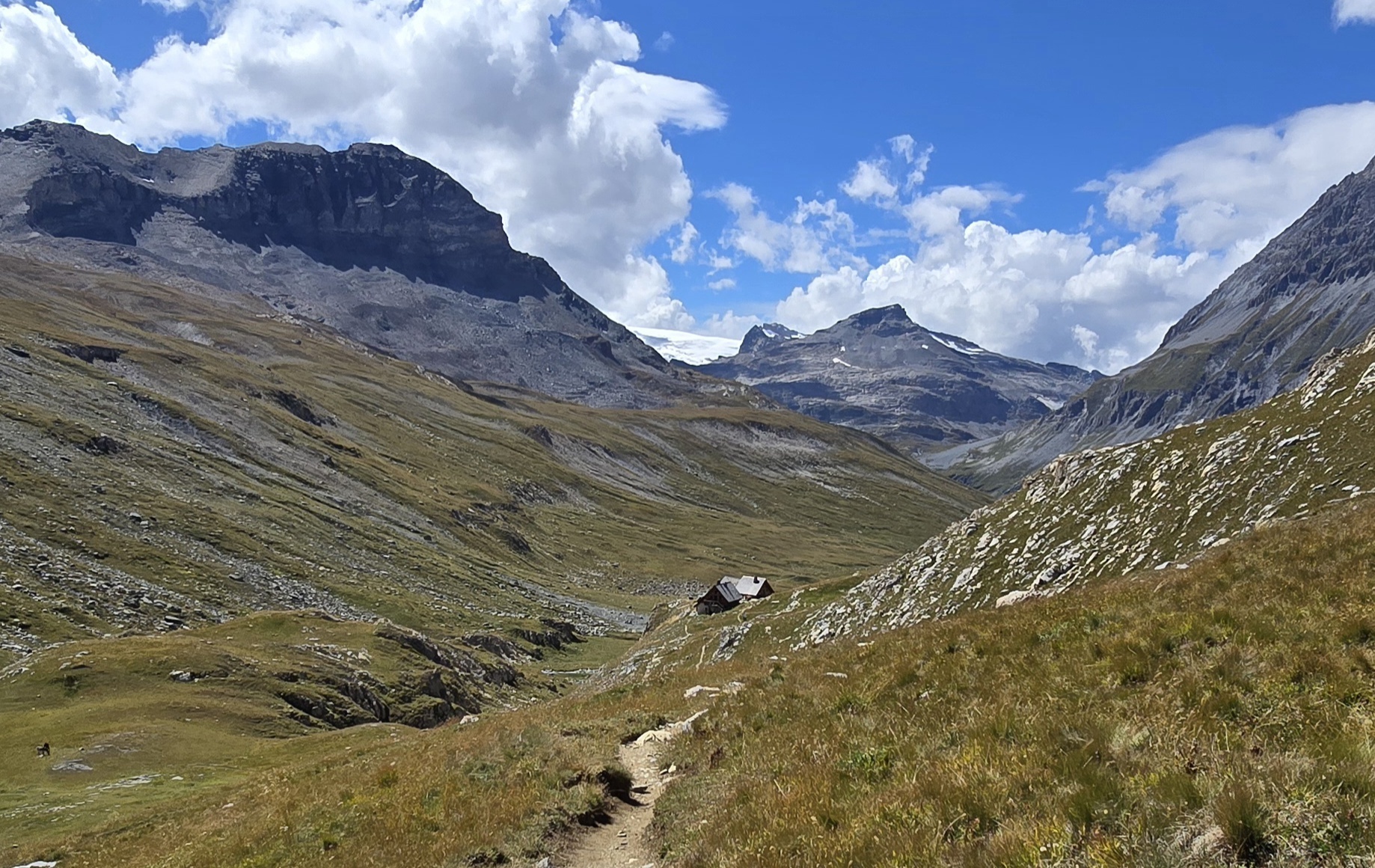 heute in einem kleinen Refuge inmitten von mit Schnee überzuckerten Bergen und schneeweissen Gletschern, weitab der Zivilisation und ohne Handy-Empfang.