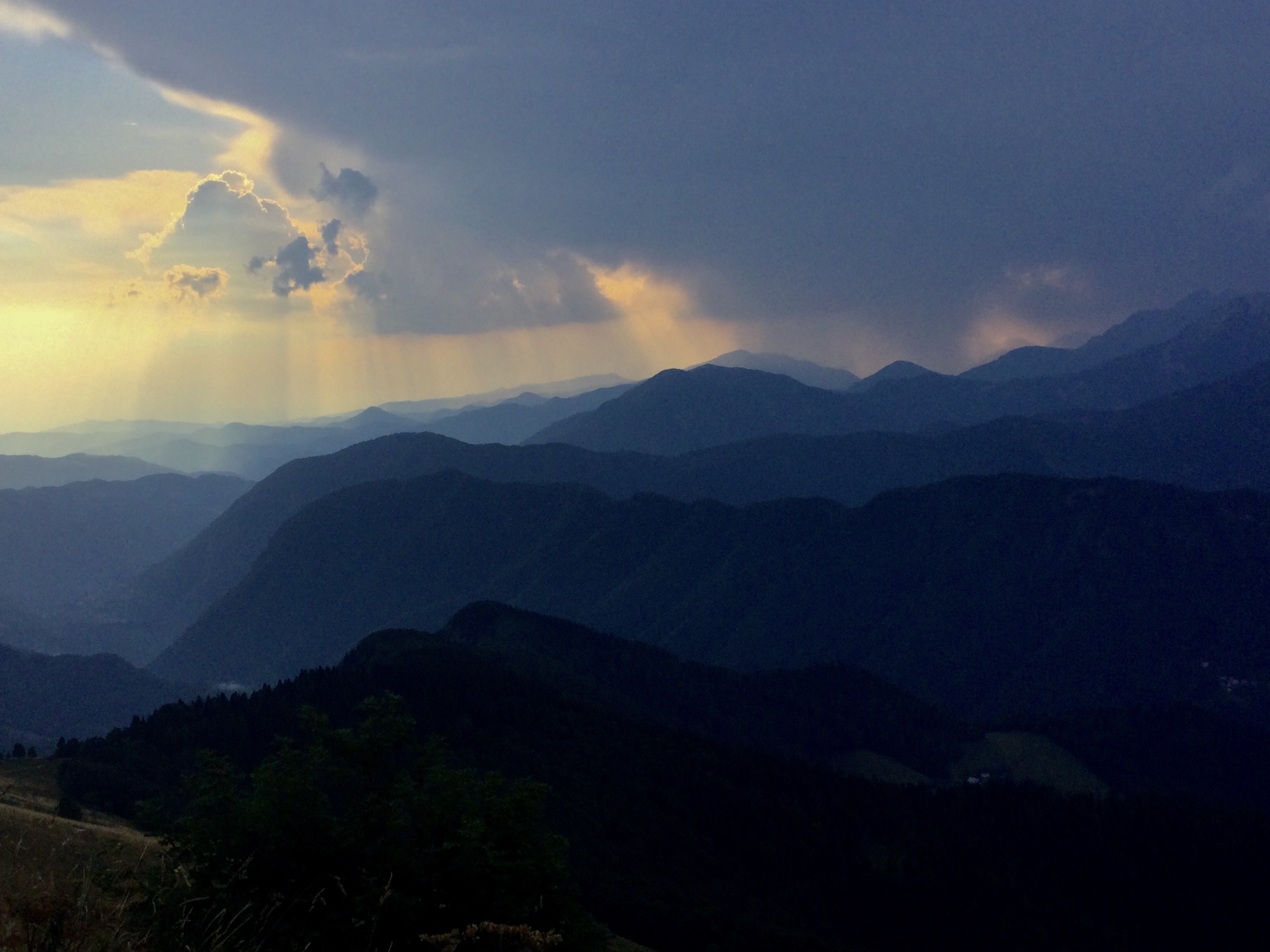 Gestern haben wir abends von der Porezen-Hütte  noch die schönen Berge im Norden bewundert - im Hintergrund der höchste Slowene - der Triglav. Majestätisch und magisch.