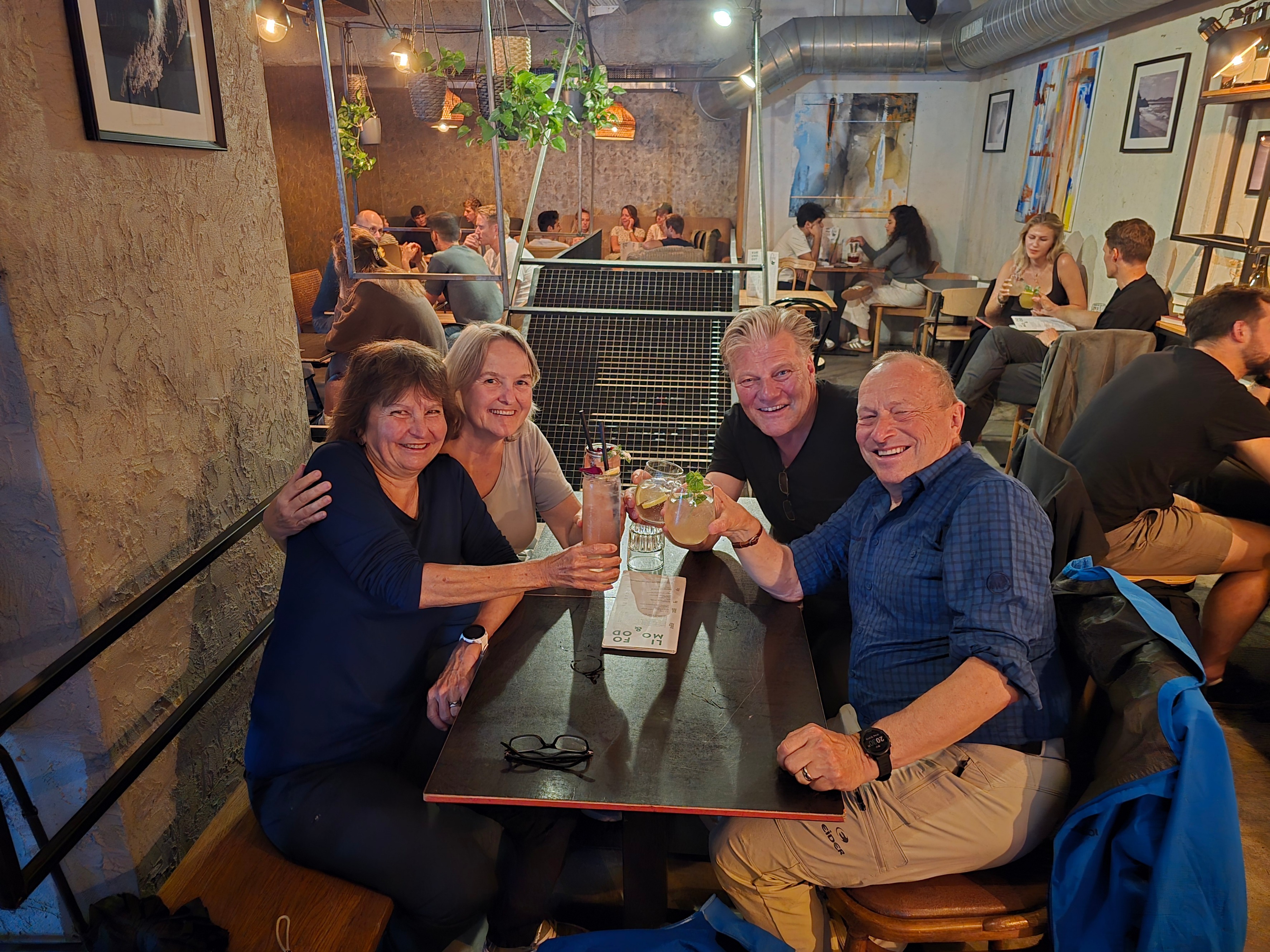 Inzwischen sind wir in Innsbruck angekommen, haben im schönen Hotel Nala ein wunderbares Zimmer bezogen und freuen uns schon auf einen feinen Znacht im indischen Restaurant (fertig mit Knödel und Käsespatzen!). Dort treffen wir unsere Freunde Regina und Peter, die zufällig auch gerade mit den Velos auf Durchreise in Innsbruck gelandet sind.