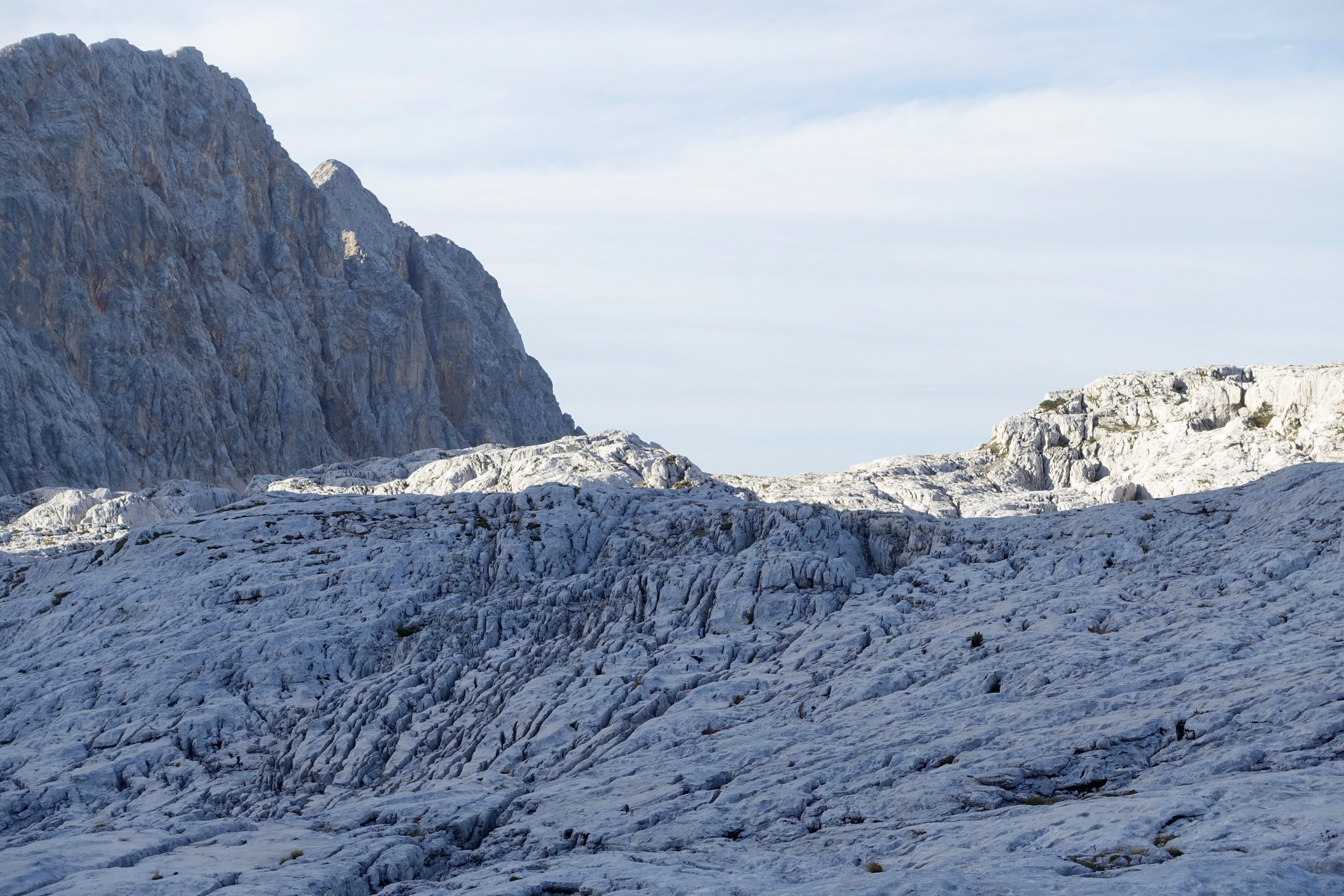 Und doch sind wir dieses Mal unseren letzten Spuren treu geblieben. Wir werden heute wieder in der Koča Prehodavcih (2050m) übernachten - in der Nähe des Triglavs. Die Hütte hat sich kaum verändert - ausser einigen Solarpanels auf dem Dach. Die sanitären Anlagen sind dürfig, da es auf der Hütte (Karstgebiet) kaum/kein Wasser hat.