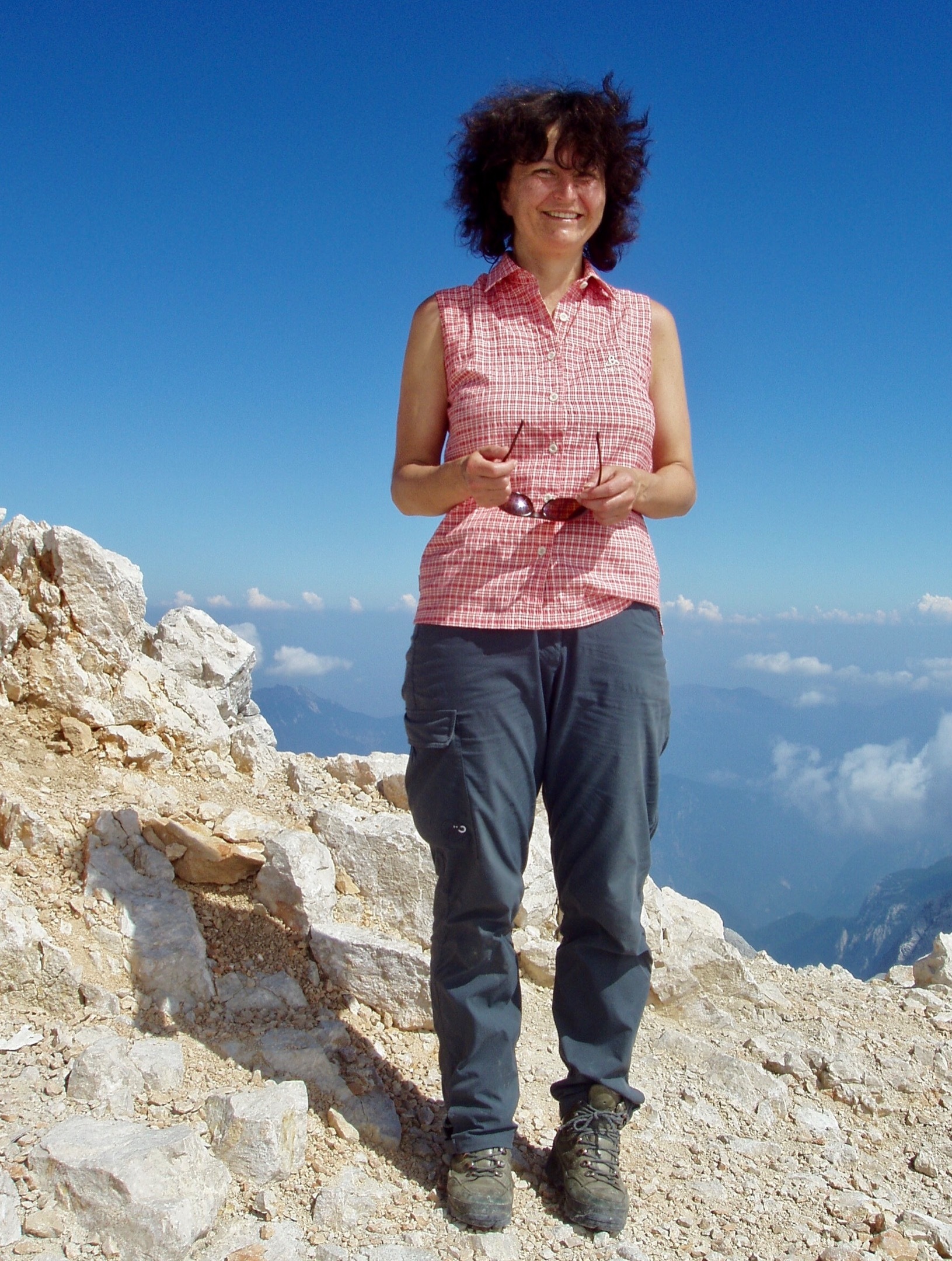 Hier noch zwei Erinnerungsfotos aus dem Jahr 2005 (vor der Hütte und auf dem Gipfel):