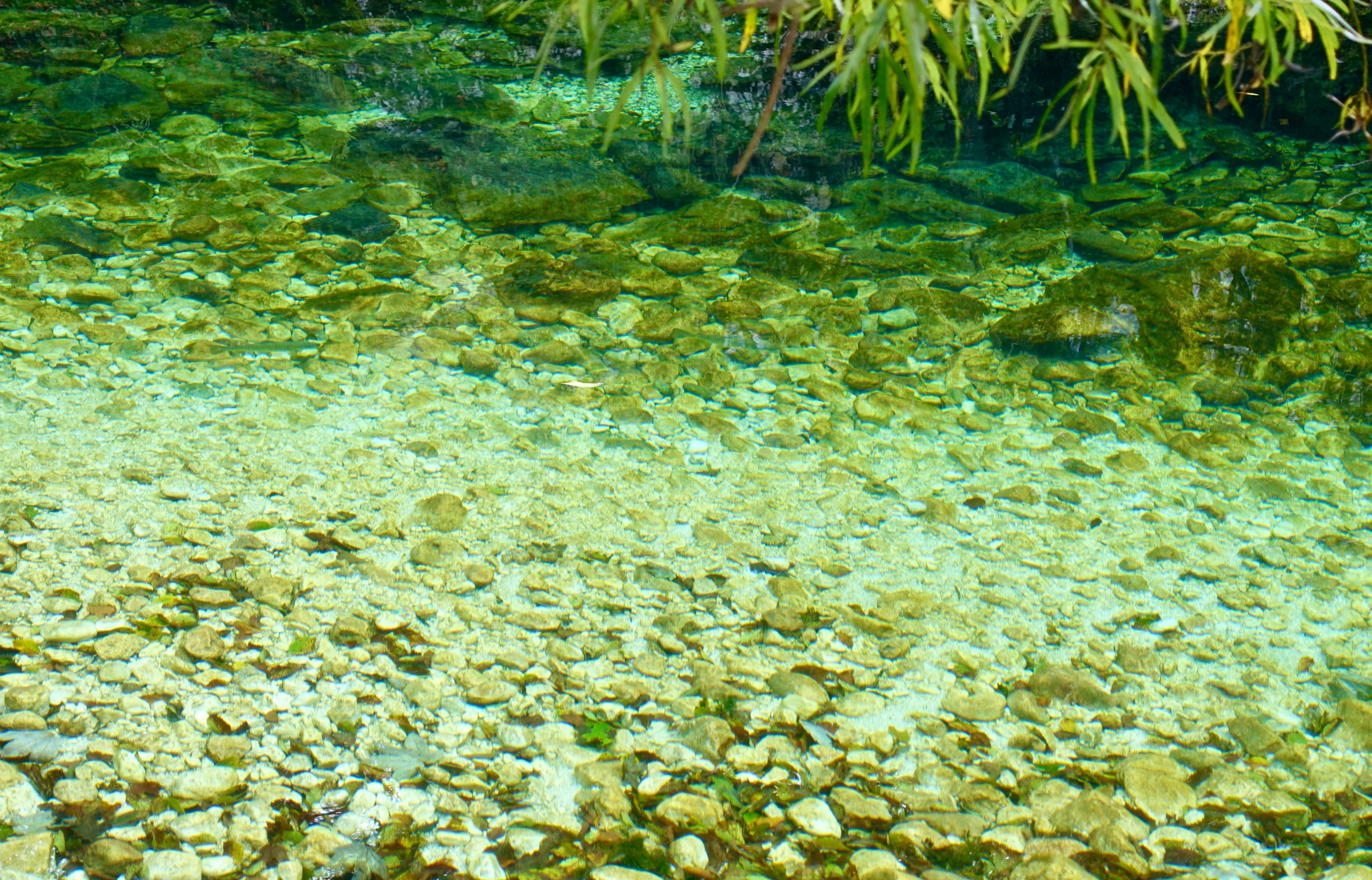 Die smaragdgrünen, glitzernden Bergflüsse, die sich tosend durch die zerklüftete, hellgraue  Karstlandschaft schlängeln, ziehen den Blick magisch an. So sind wir bereits staunend der Soča und der Savica gefolgt. Aber auch die höhergelegenen Bergseen fesseln den Blick durch ihr kristallklares Wasser, das die Betrachter/in buchstäblich mit in die Tiefe zieht, sodass nicht mehr klar ist, wo die Realität endet und das Spiegelbild anfängt.