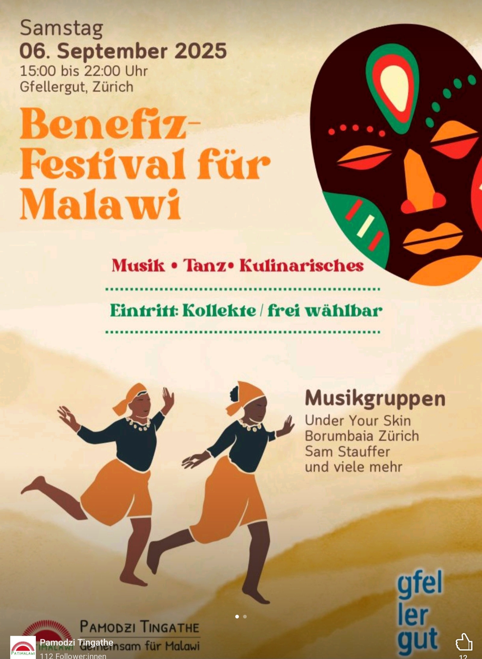 Seit langem geplant und hervorragend organisiert war die Benefiz-Veranstaltung des Sozialpädagogischen Zentrums Gfellergut für unseren Verein "Patimalawi". Das war eine Riesensache mit zwei Bühnen, Musik, Tanzveranstaltungen und mehreren Essensständen. Erwartet wurden bis zu 500 Gäste! Während diesem Anlass fand auch noch gleichzeitig die Jahresversammlung des Vereins statt. Unter normalen Umständen hätte ich da als Vereinskassier (=Kassenwart) zwingend anwesend sein müssen.