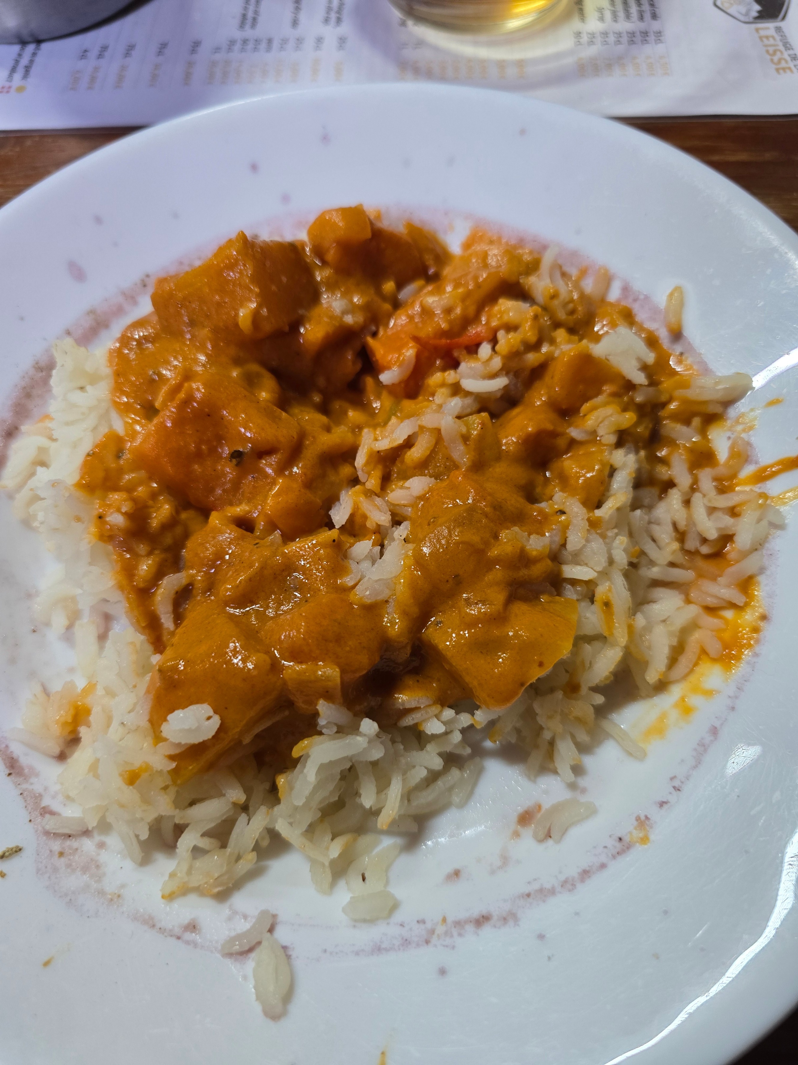heute gab es zum Znacht Rotkrautsuppe, Reis mit Gemüsecurry und ein kleines Stück Kuchen.