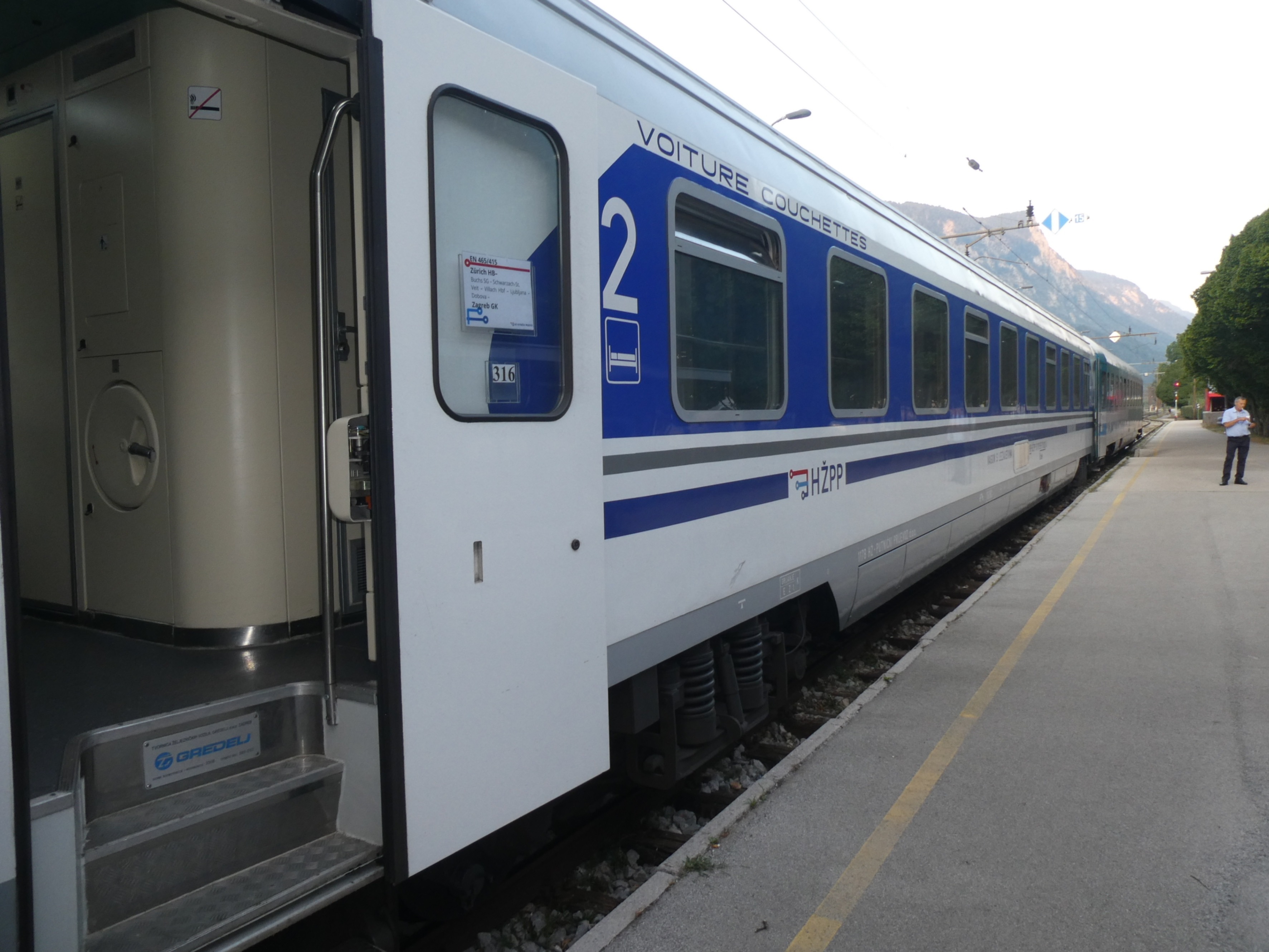 Für uns ganz allgemein und für die Weitwanderungen im Speziellen sind öffentliche Verkehrsmittel die sinnvollste Variante zu reisen. Am liebsten fahren wir mit dem Zug und für lange Strecken wählen wir nach Möglichkeit den Nachtzug. Allen Unkenrufen betreffend der schlechten Ausstattung, der engen Verhältnisse, der Unpünktlichkeit etc. (die teilweise sehr berechtigt sind) zum Trotz lieben wir es, in Zürich bereits in „die Federn“ zu steigen und nach einer gar nicht mal so schlechten Nachtruhe früh am Morgen in der Nähe des Zielortes anzukommen.