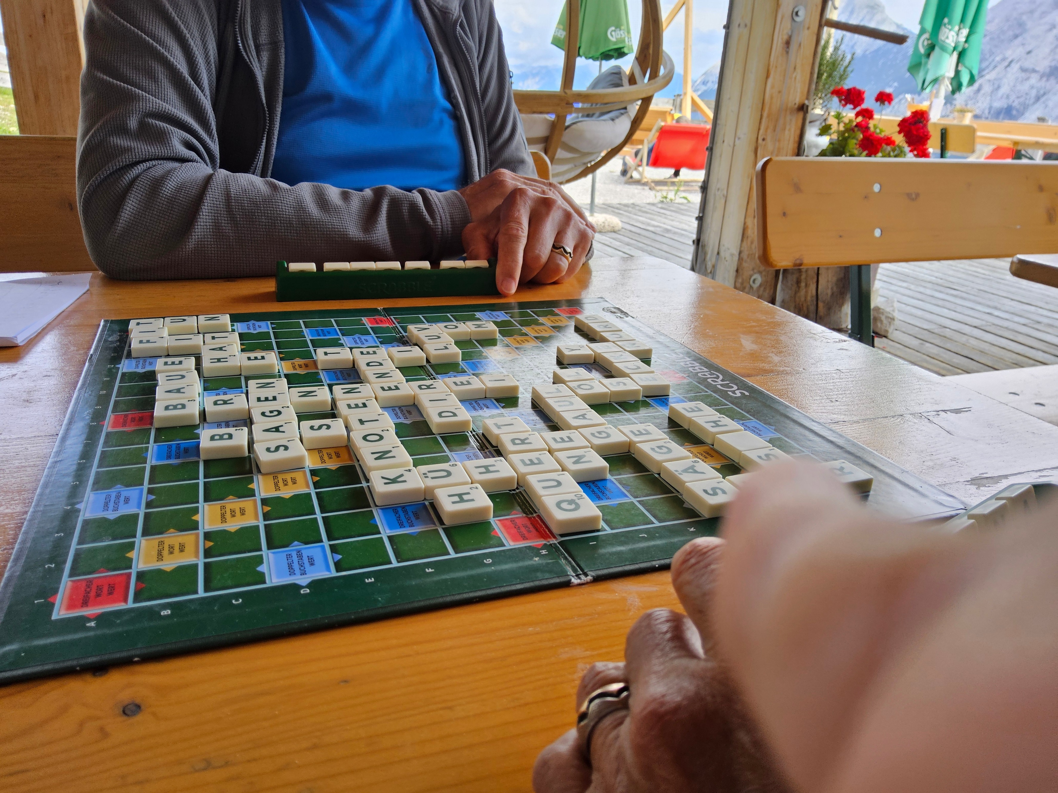 Wir sind herumgefläzt, haben gefrühstückt (!), gelesen, Mittagsschläfchen gemacht und sogar gemeinsam ein Scrabble gespielt, wobei ich wie gewohnt verloren habe. In der Nacht und am Morgen hatte es gewittert und heftig geregnet, gegen Mittag hat es bereits wieder aufgeklart und wir hoffen morgen auf schönes oder zumindest trockenes Wetter. Dann ist nämlich fertig herumgefault, wir ziehen weiter.