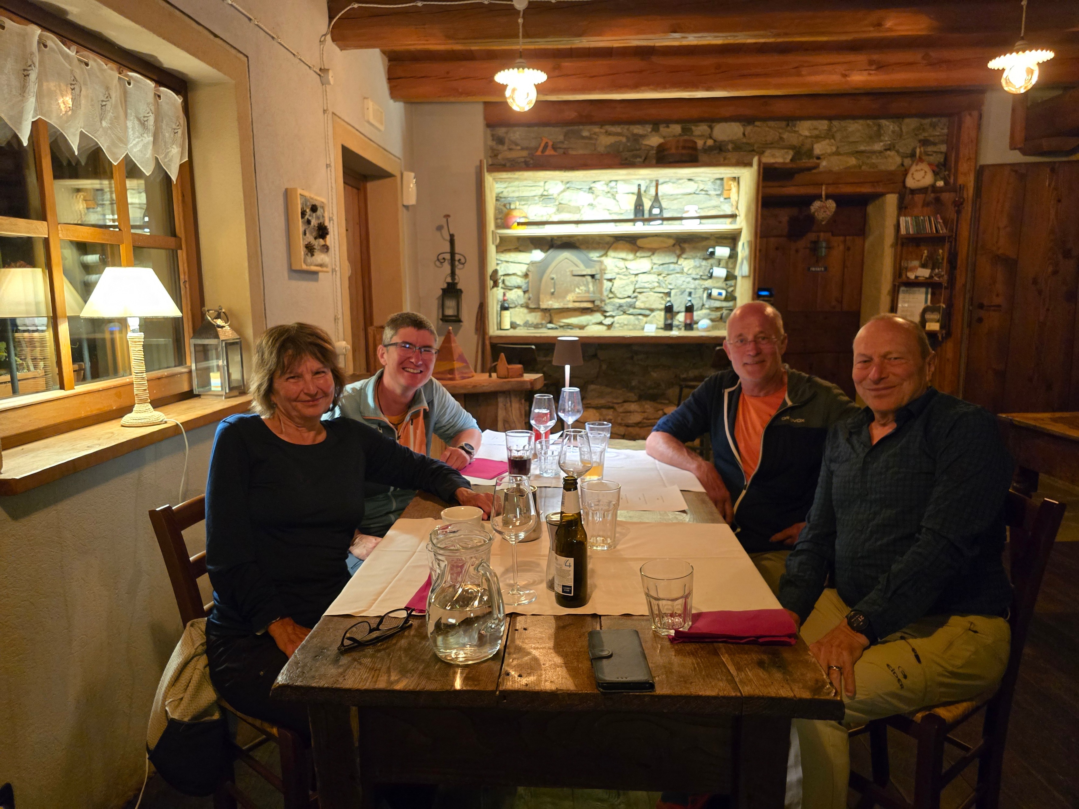 Eine besondere Freude und Überraschung war, dass unsere Via-Alpina-Freunde aus Deutschland auch noch hier sind. Es wurde wieder ein lustiger Abend.
