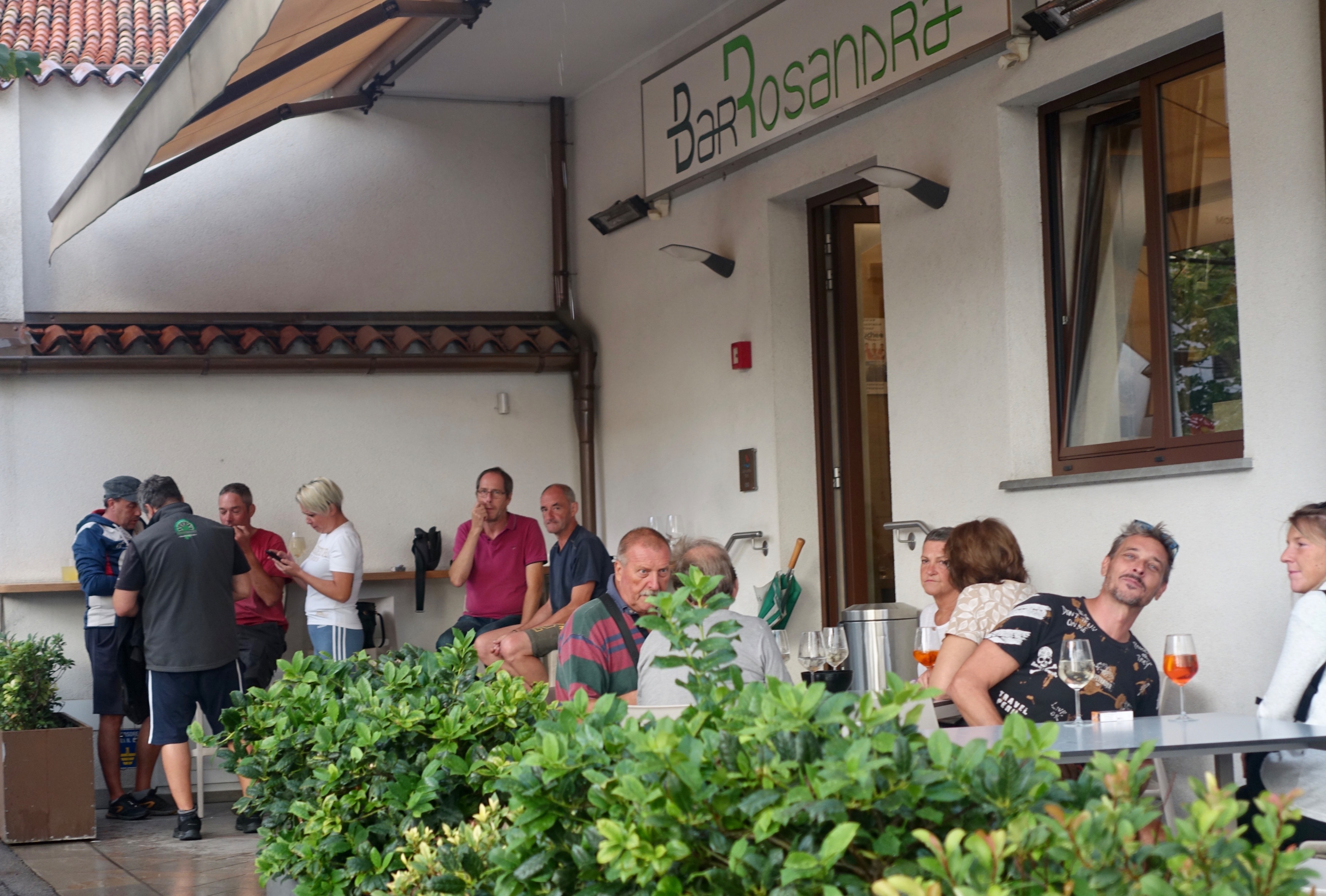 Aber dann, nach unserer Ankunft im Dorf, beim ersten Cappuccino an der Bar, erlebten wir wieder einmal italienischen Jubel und Trubel am Feierabend. Jeder kennt jede und man tauscht heiter den neusten Klatsch aus - Sanitäter, Krippenleiterin, Mütter mit Kindern, Dorfälteste, Handwerker - sie alle fahren vor und stellen ihr Auto sorglos in die letzte Lücke - auch wenn dort kein Parkplatz vorgesehen ist. Ein fröhliches und lautes Kommen und Gehen, wir staunen und lächeln - wir lieben sie halt … viva Italia 🥰