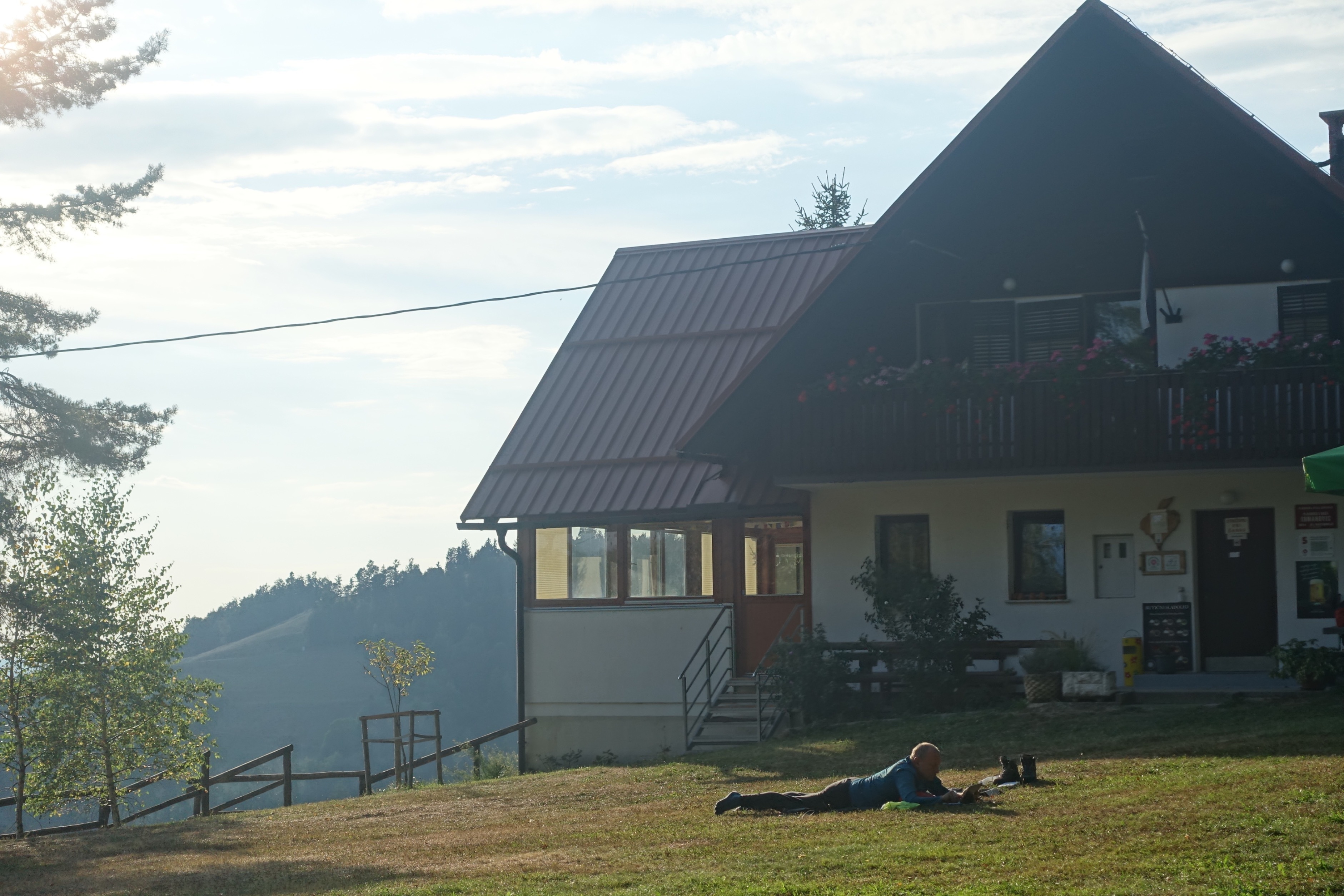 Aktuell liegen wir um 17 Uhr hundemüde auf der Wiese vor unserem schönen Übernachtungsort. Die Besitzerin hat uns vergessen und reist grad von Österreich an. Sie ist frühestens 19 Uhr da…